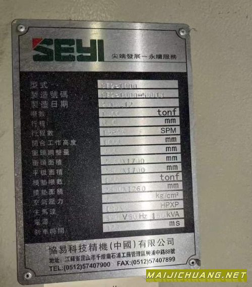 长沙工厂在位少用协易1000吨冲压线5台.
