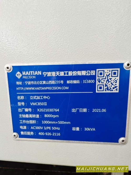新到一台2022年台湾格勒玛850V加工中心.
